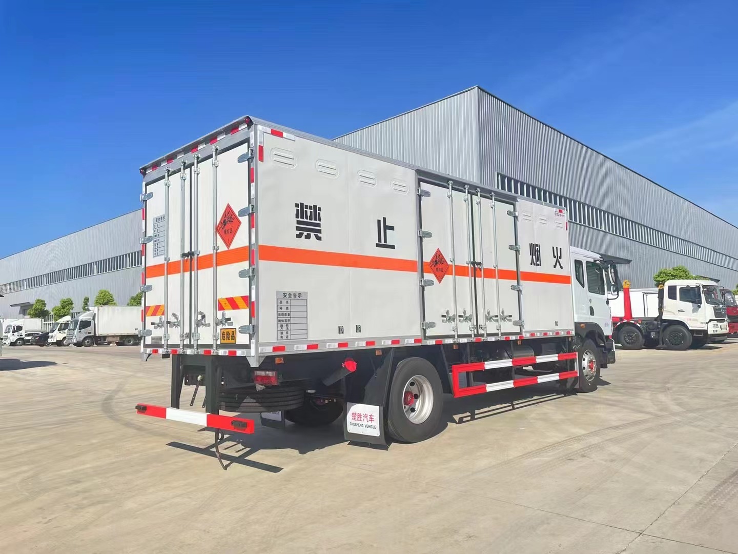 2,廂內配置:車廂底板上方鋪設防靜電膠皮,廂體內前臉50公分高鋪設防靜電膠皮。整車尾部設置對開門,廂體內部兩側安裝捆綁貨物的臥環。廂體內部安裝煙霧報**器,門上安裝防盜報**感應器。