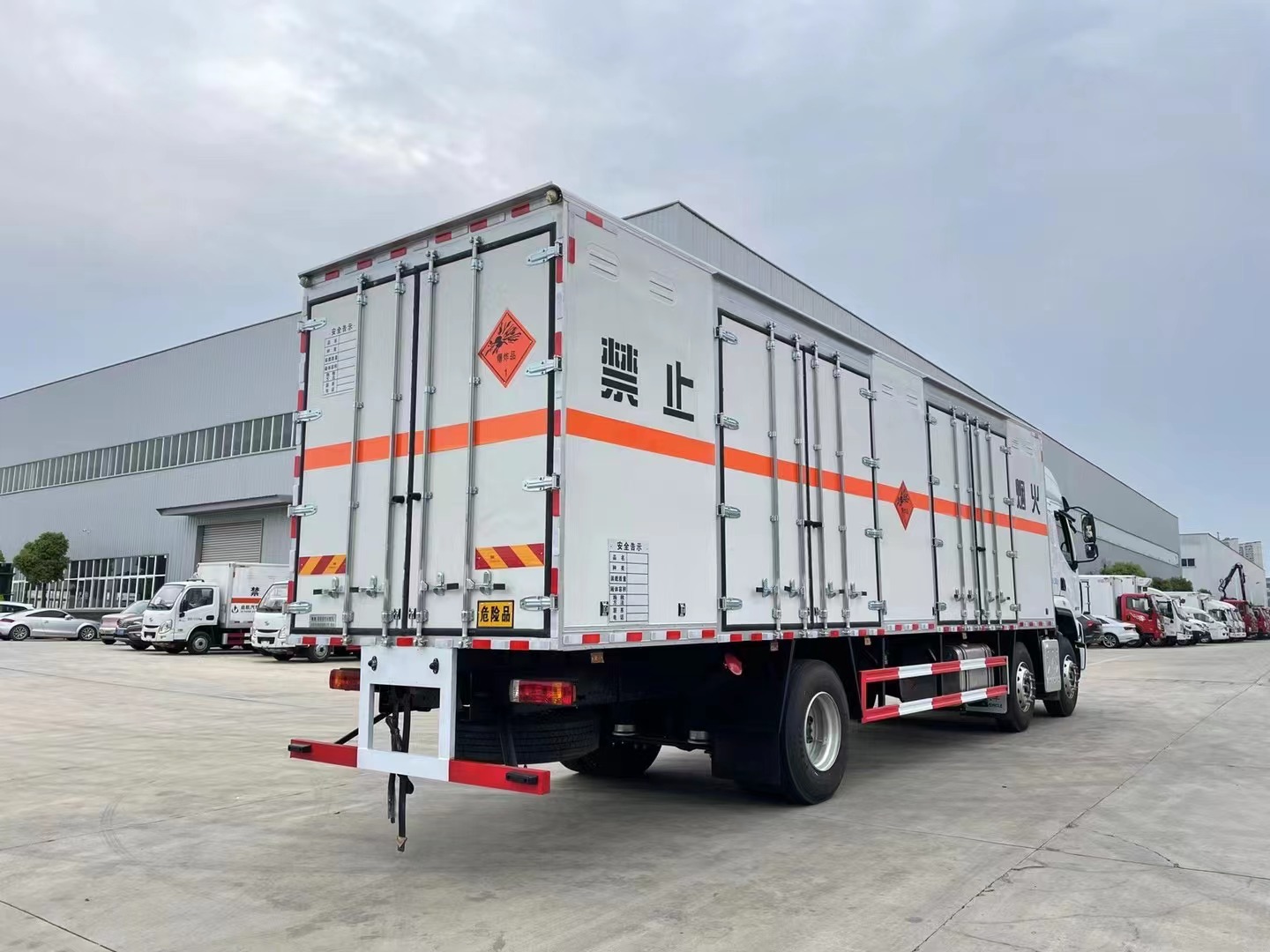 廂體配置:嚴格按照公告尺寸制作。外板采用1mm厚冷軋鋼板帶百葉窗,內飾為導電性能良好的鋁平板有透氣孔,矩形骨架結構內部填充防潮阻燃擠朔板,復合加鉚合工藝。廂體四周鋁合金包邊及包角,車廂底板鋪設防靜電膠皮,廂體前臉50公分高鋪設防靜電膠皮。后部設置對開門,廂體內部兩側安裝捆綁貨物的臥環。廂體內部安裝煙霧報**器及防盜報**感應器。